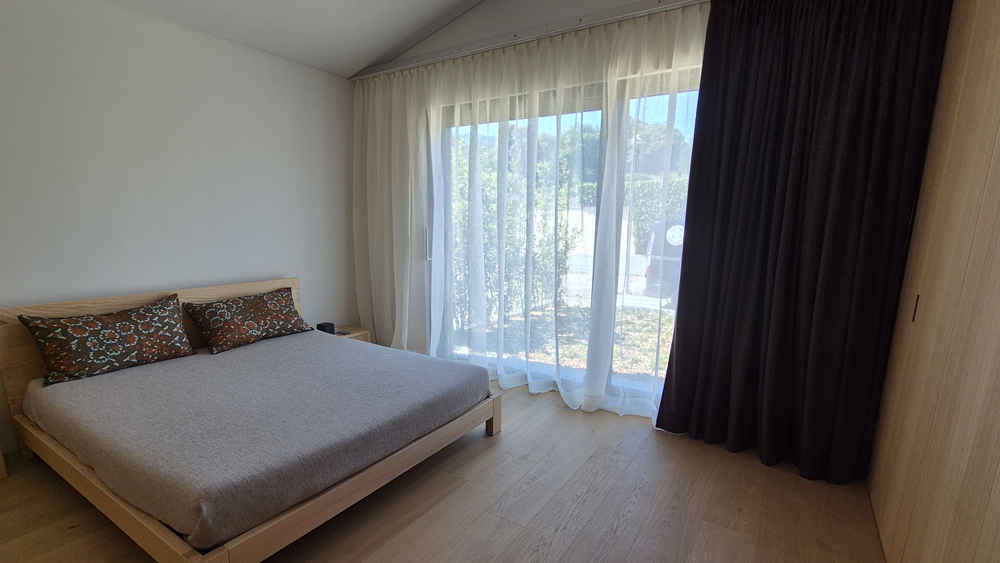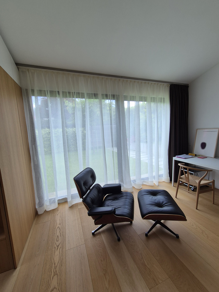 Die Superlight-Vorhänge filtern sanft das Tageslicht, während die Cavallo-Vorhänge für effektive Verdunkelung und eine moderne, elegante Note sorgen.