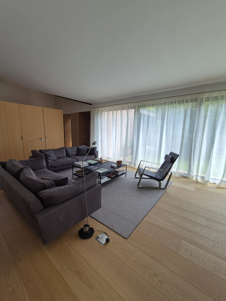 Das Ziel war es, einen schlichten und harmonischen Stil zu bewahren, der mit der modernen Architektur des Hauses mit grossen Fensterfronten, Holzoberflächen und klaren Linien perfekt übereinstimmt.