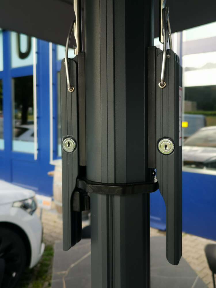 - Struttura robusta in alluminio e acciaio inox, ideale per ambienti esterni ad alta frequentazione.